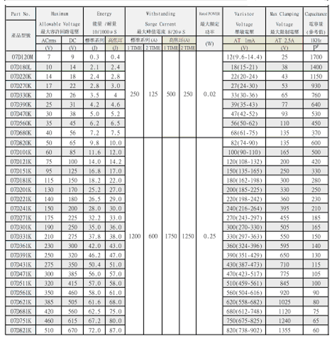 07D系列壓敏電阻是所有行業(yè)當中應(yīng)用最廣泛的產(chǎn)品